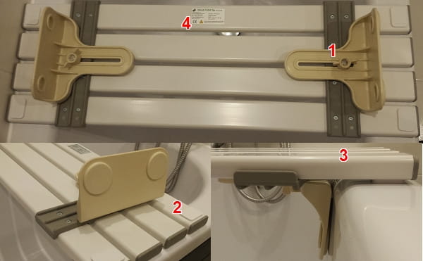 2) Gumowane punkty oparcia (poziome i pionowe) uniemożliwiają porysowanie wanny a także unieruchamiają ławeczkę